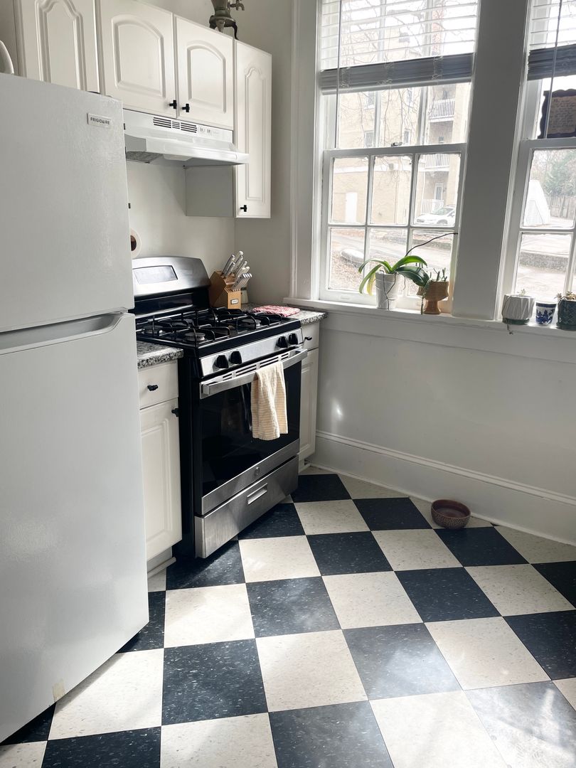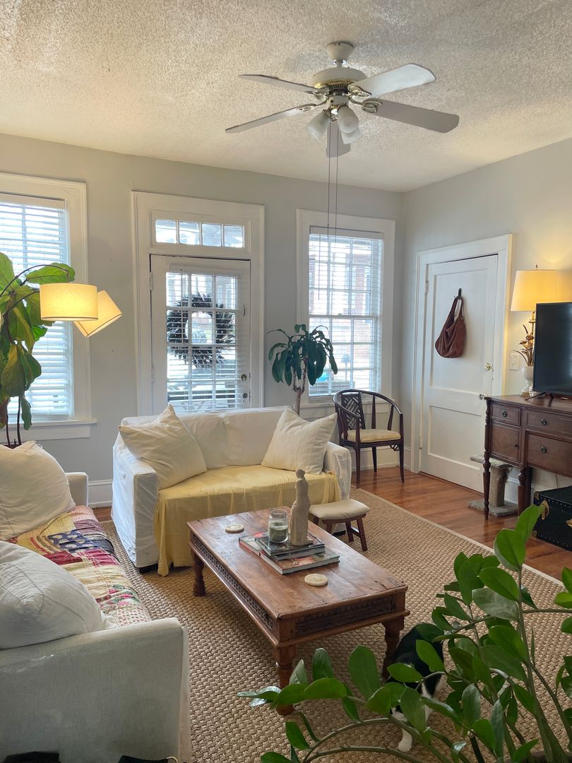 Enjoy hardwood floors, tall ceilings, tons of natural light, central heat and air, dishwasher and gas appliances. Large kitchen with breakfast nook perfect for slow mornings or a quick toast and cup'a joe!