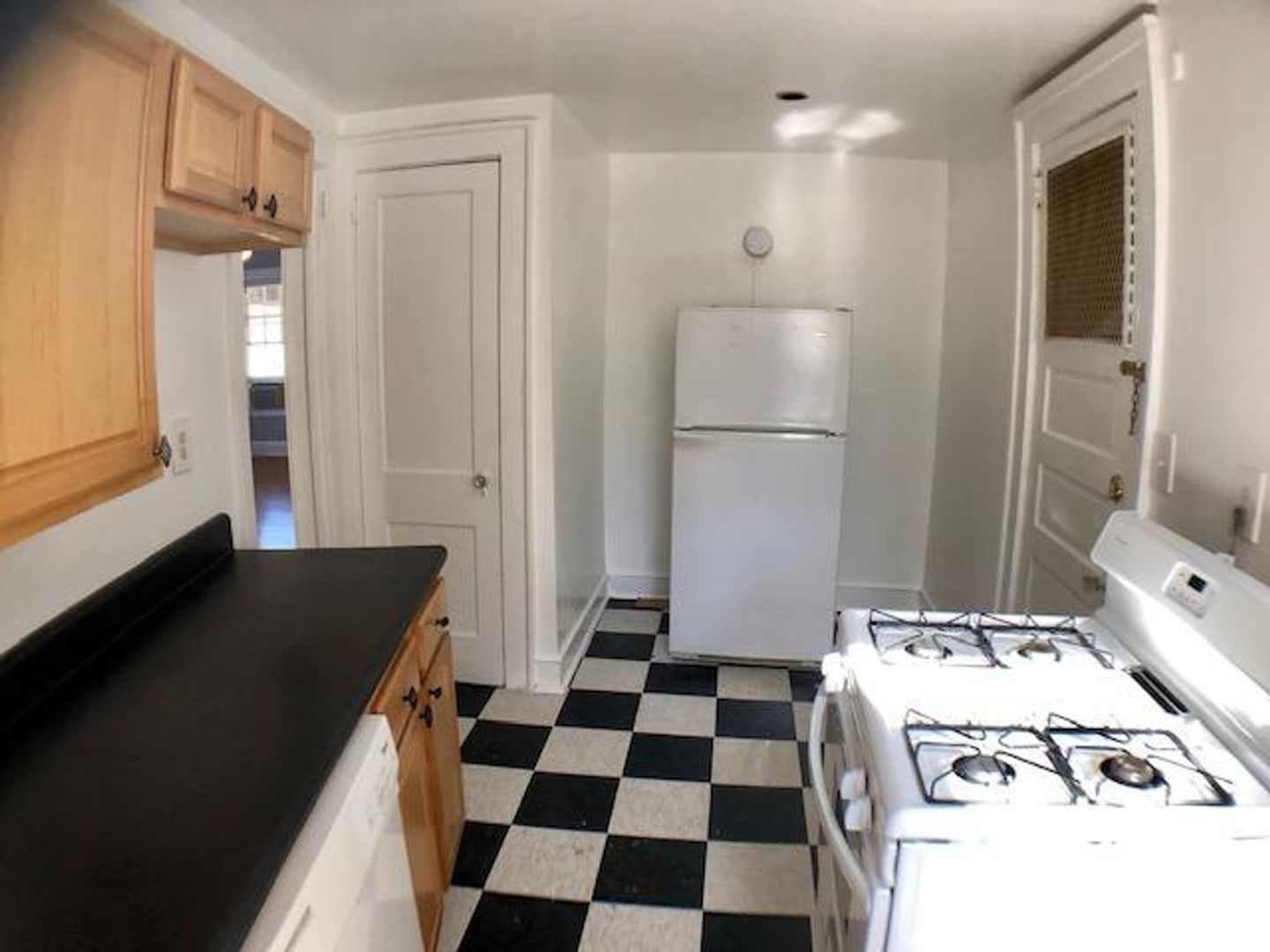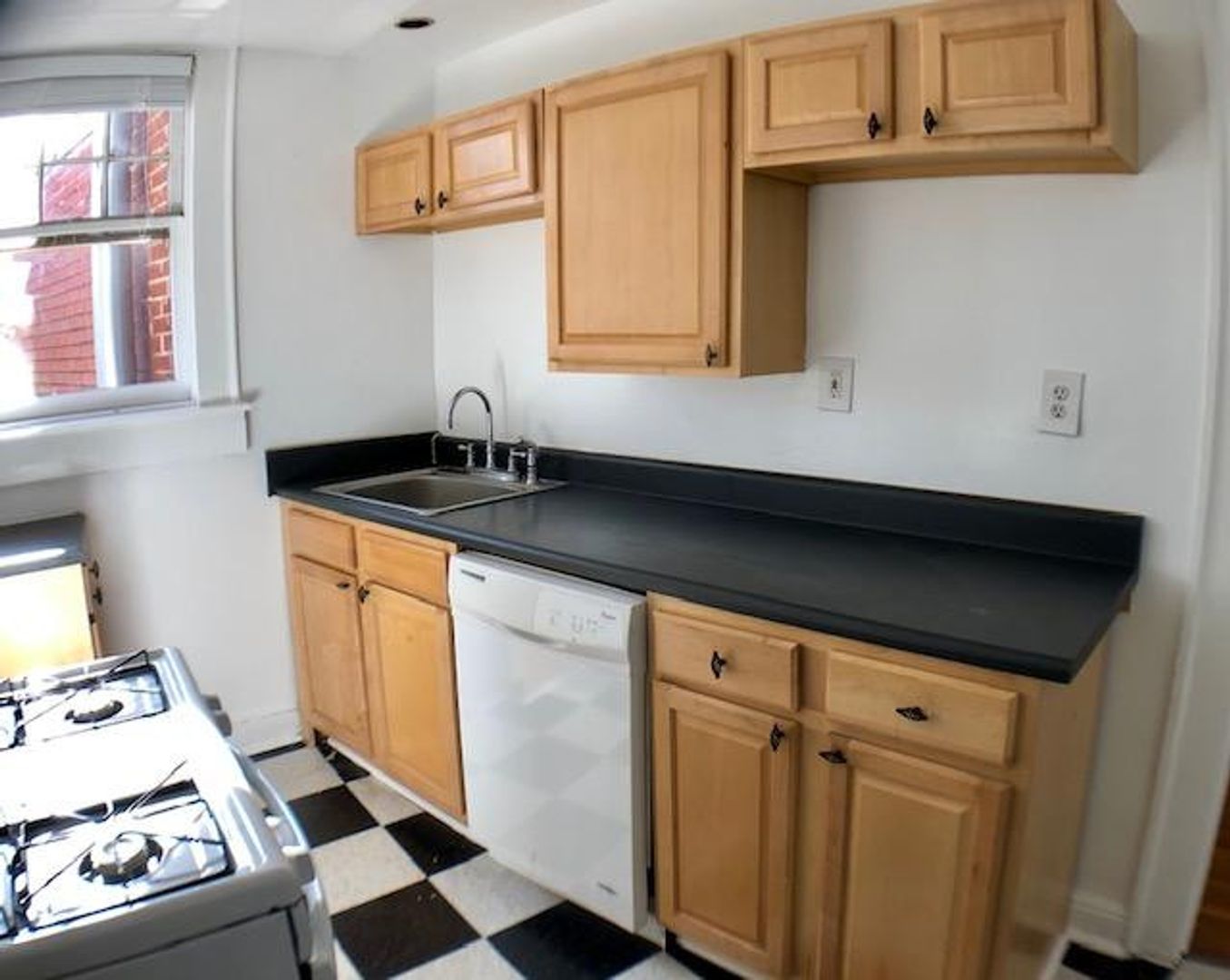 This two bed, one bath apartment is top-floor AND a corner unit.