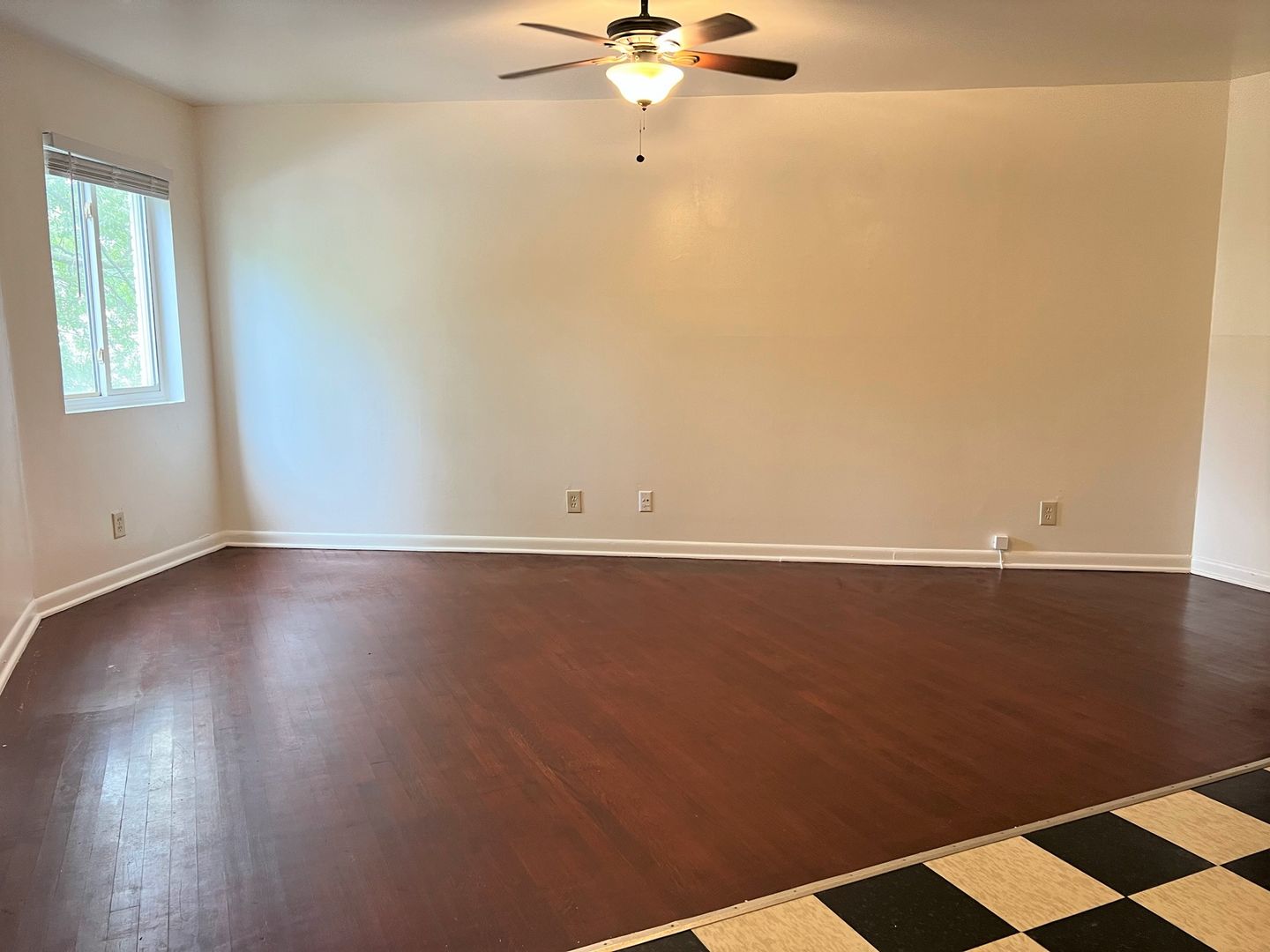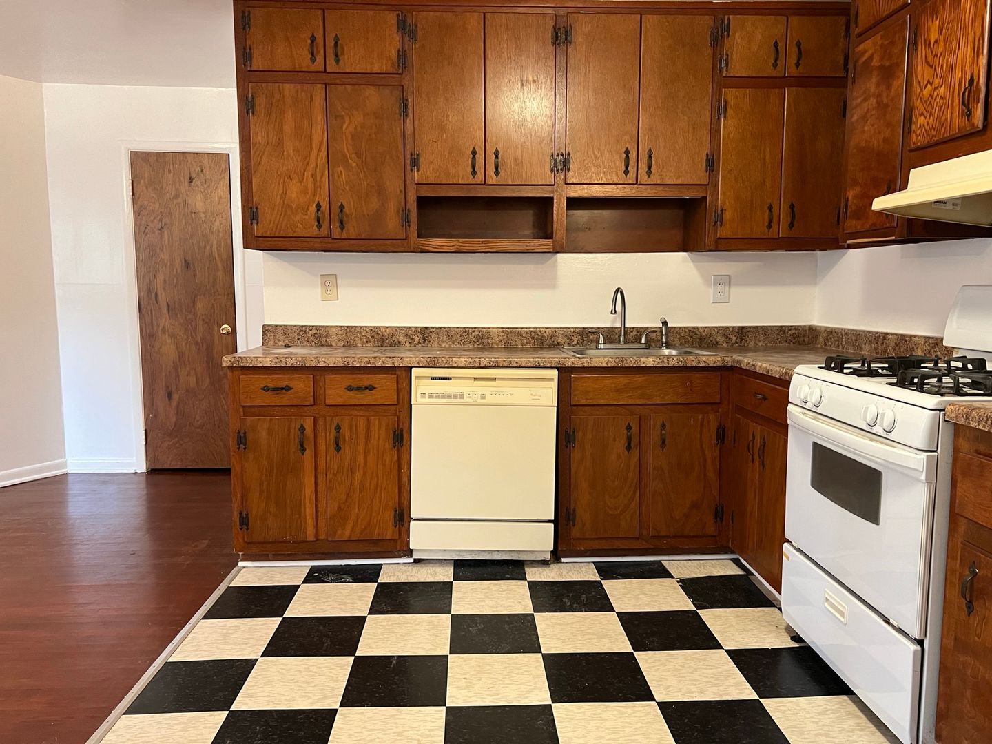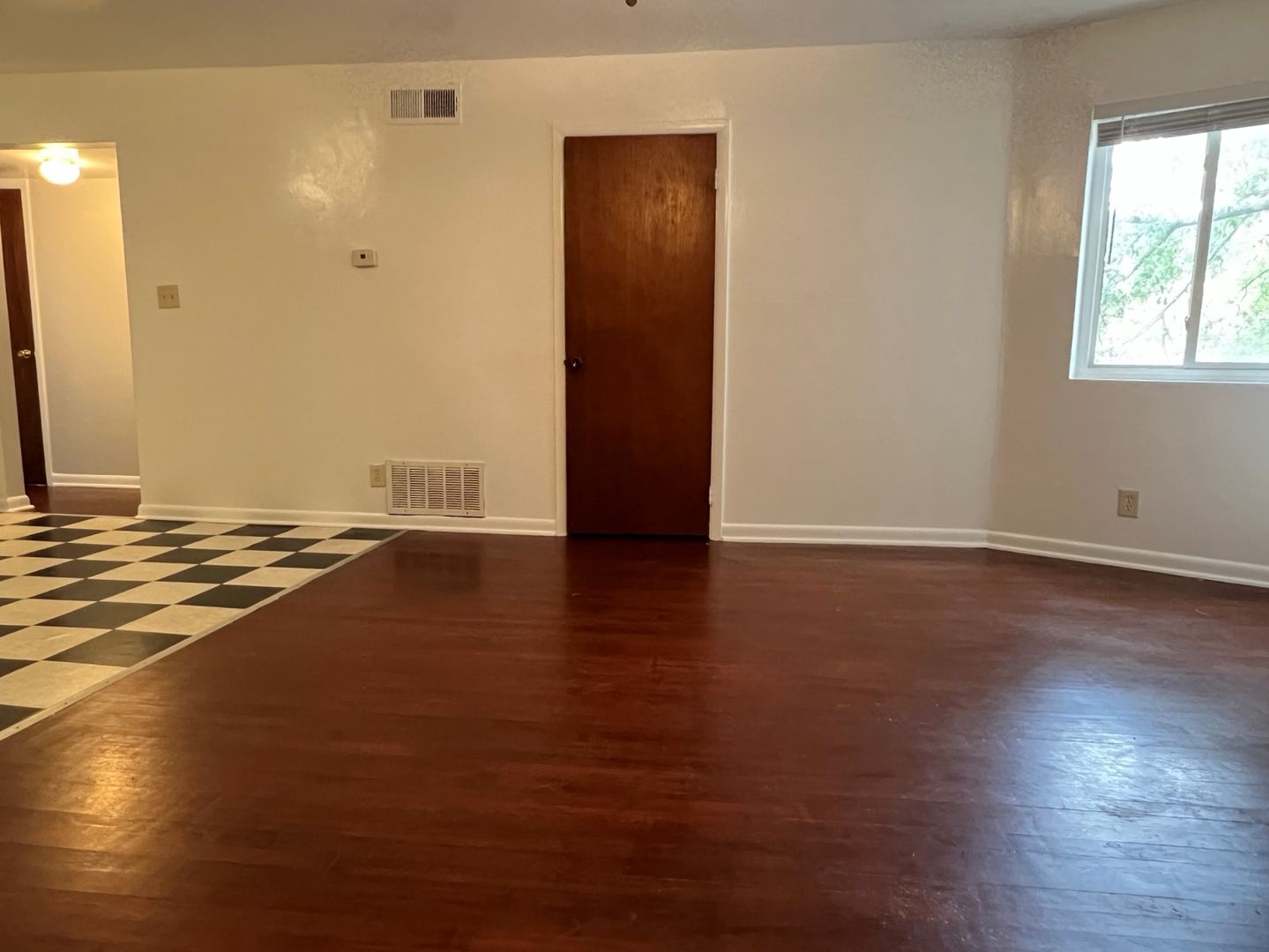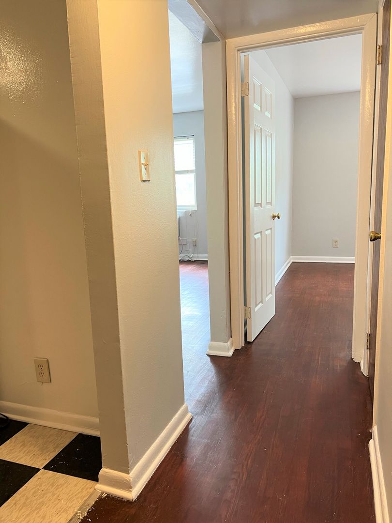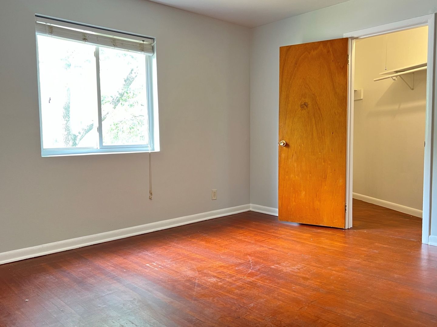 Unique floor plan, this apartment has hardwood floors, spacious open kitchen and living room. Linen closet in hall plus walk-in food pantry and additional walk-in storage closet.