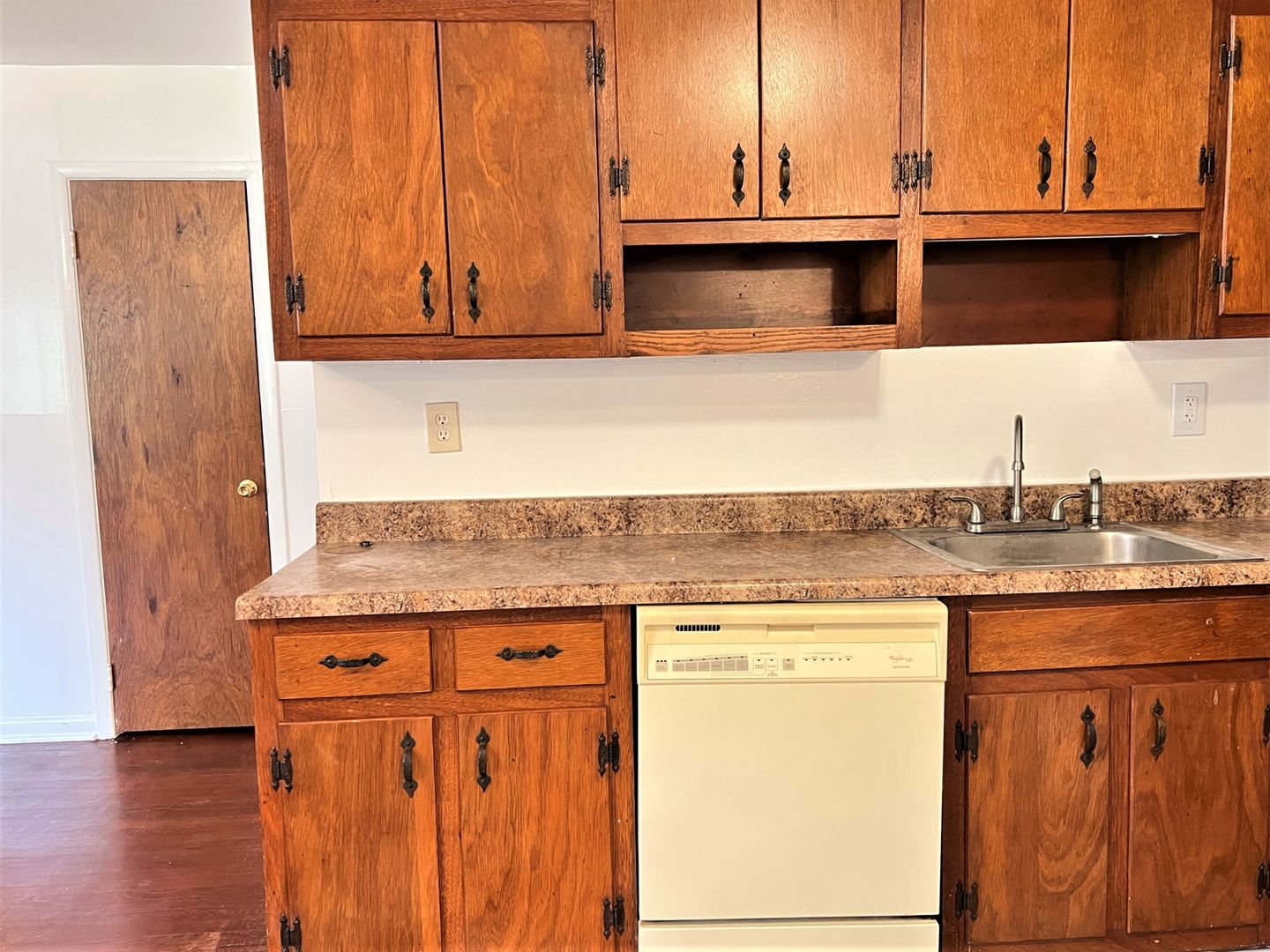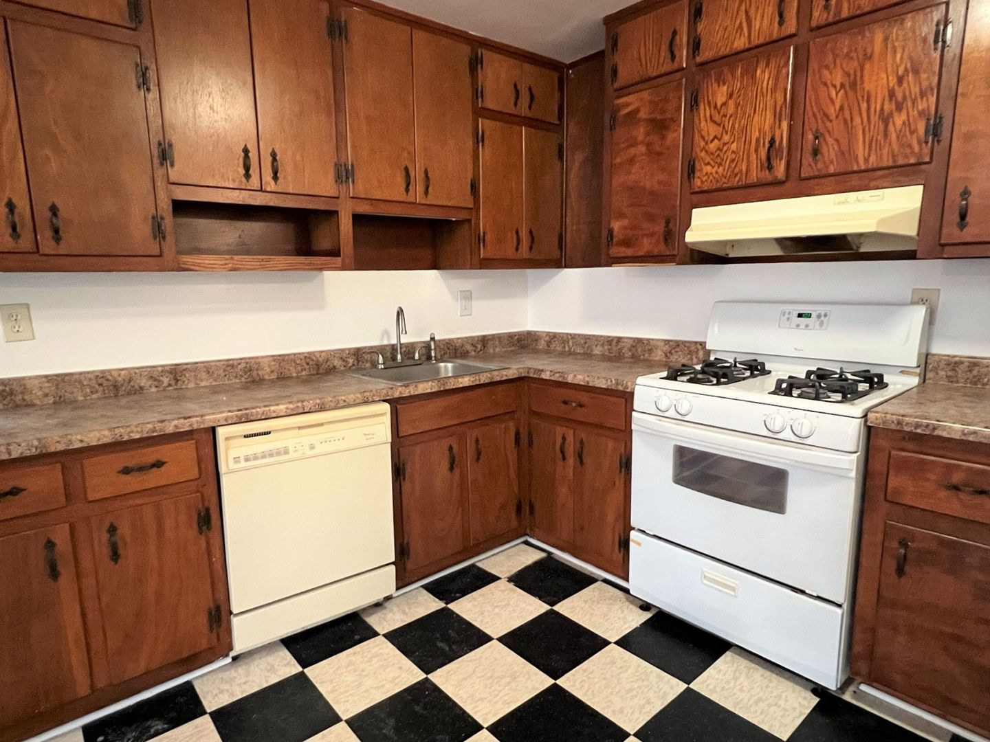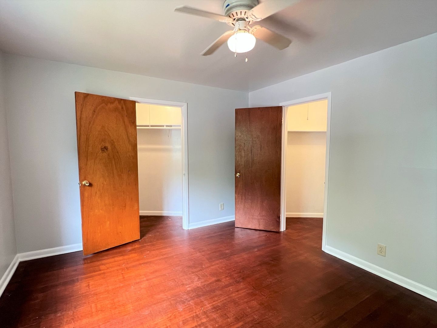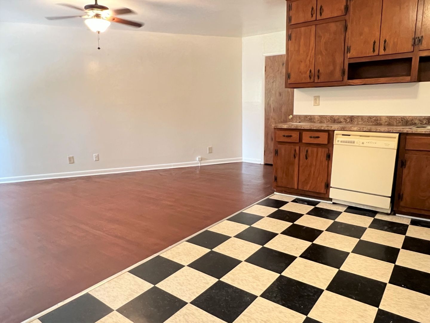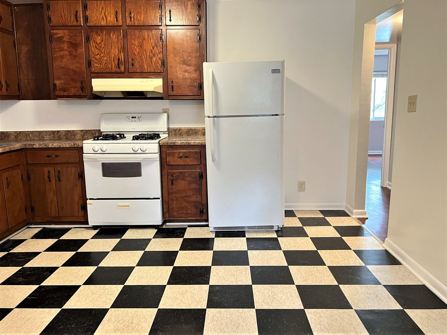 Unique floor plan, this apartment has hardwood floors, spacious open kitchen and living room. Linen closet in hall plus walk-in food pantry and additional walk-in storage closet.
