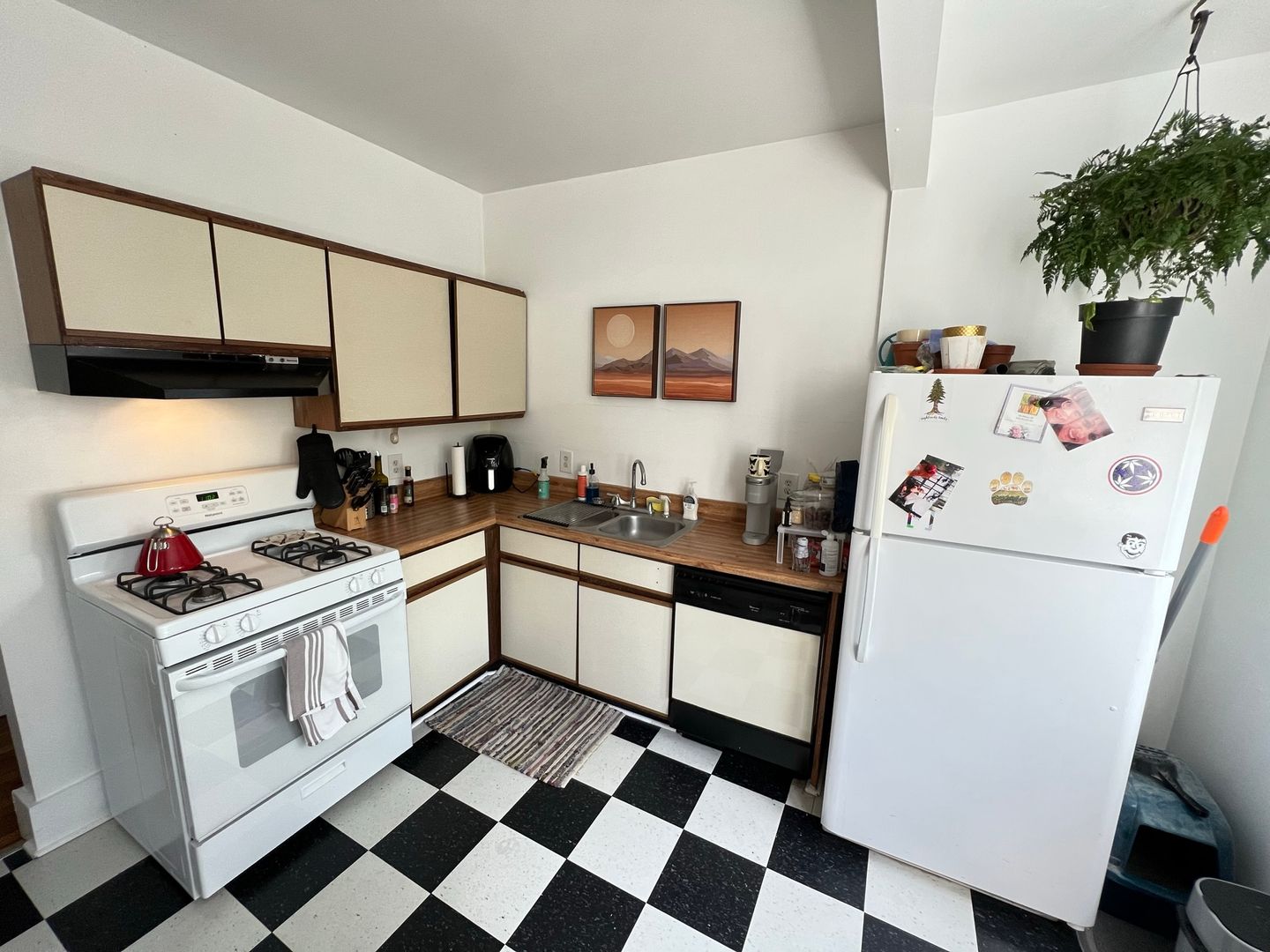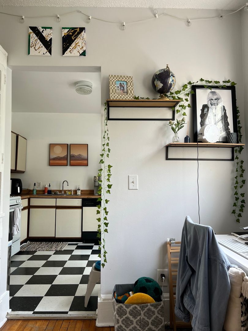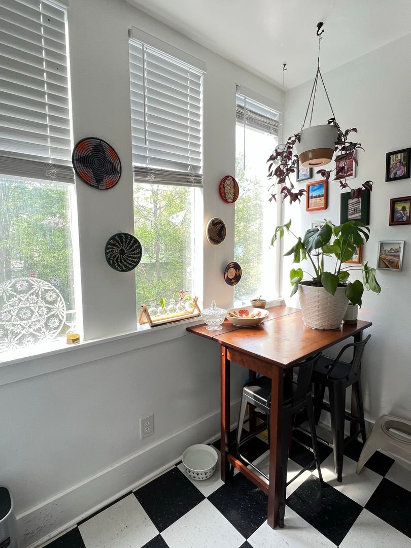 Top floor unit in boutique building. This apartment offers hardwood floors, tall ceilings, central heat & air, on-site laundry, off-street parking, and a spacious kitchen with dine-in area and dishwasher!
