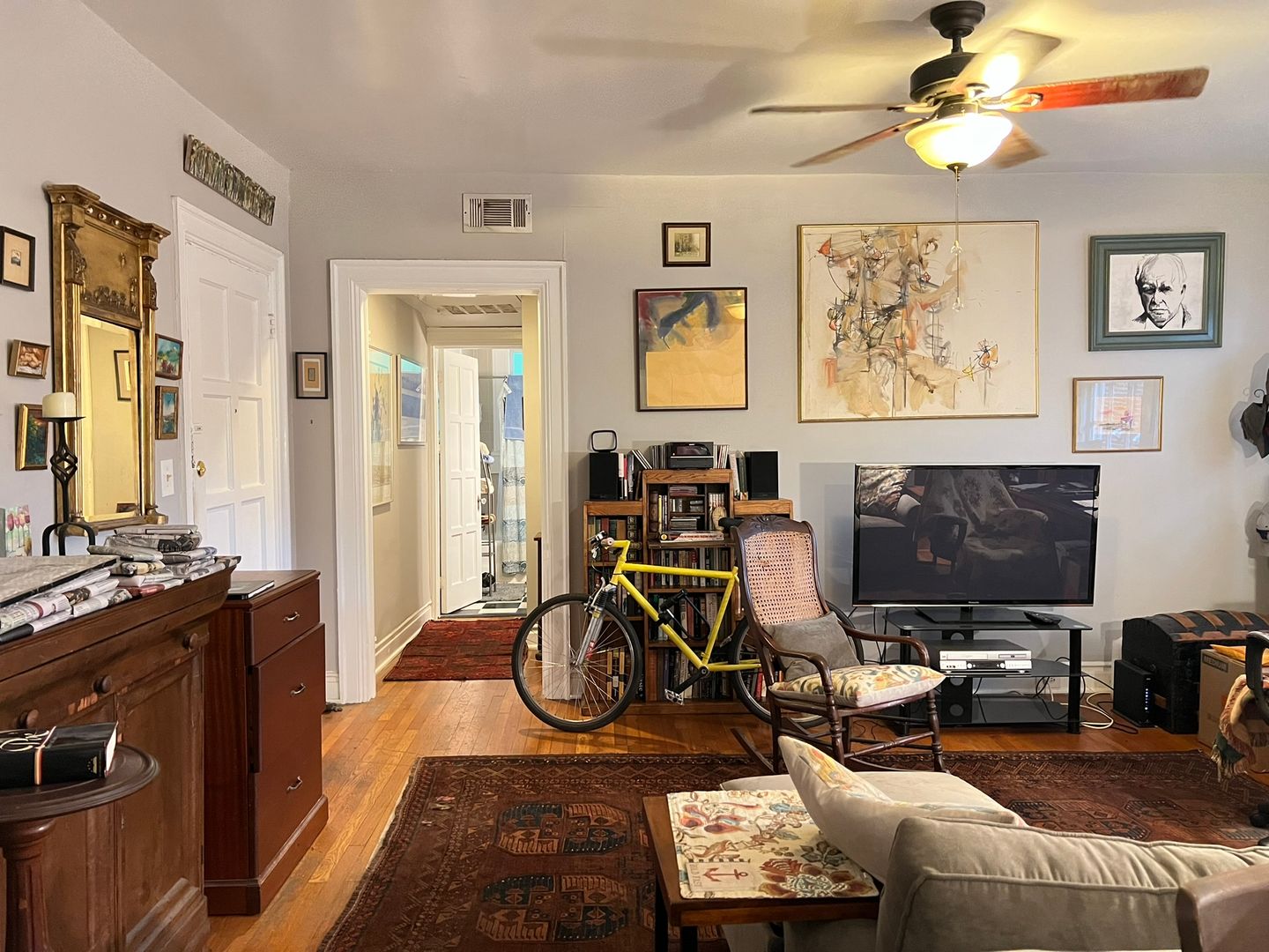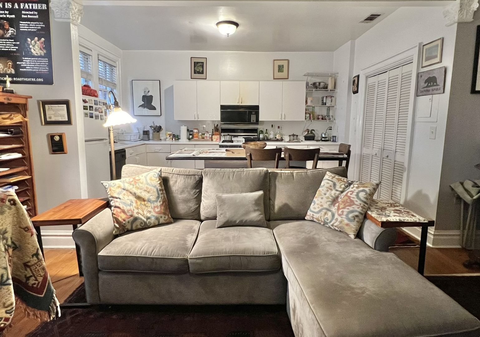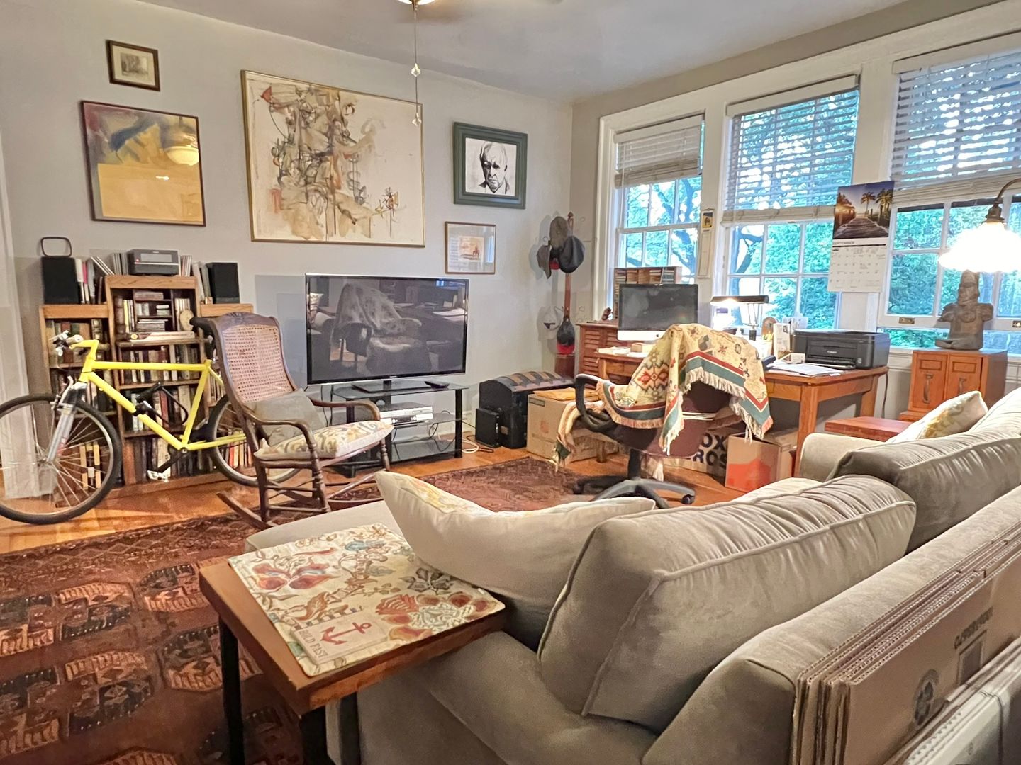 This renovated apartment boasts a large kitchen island, washer/dryer in-unit, central heat & air, dishwasher, garbage disposal, and tall sunny windows that flood the space with natural light. The hardwood floors and full kitchen pantry add to the appeal of this boutique building.