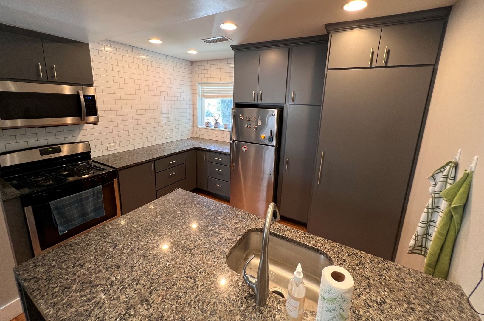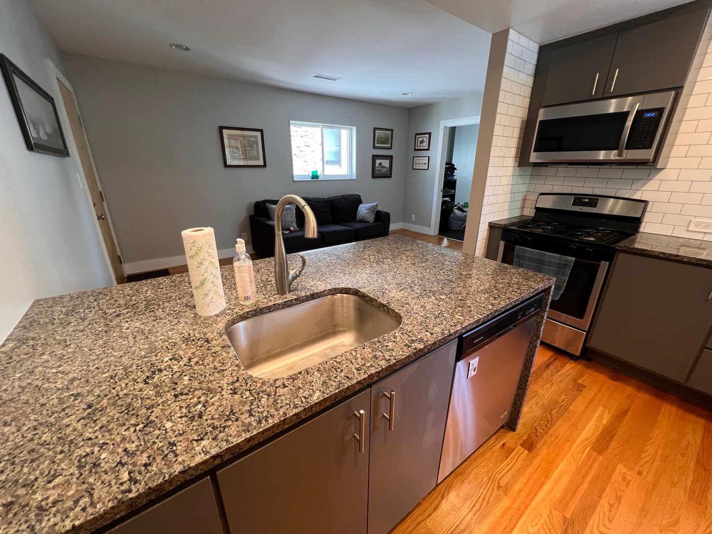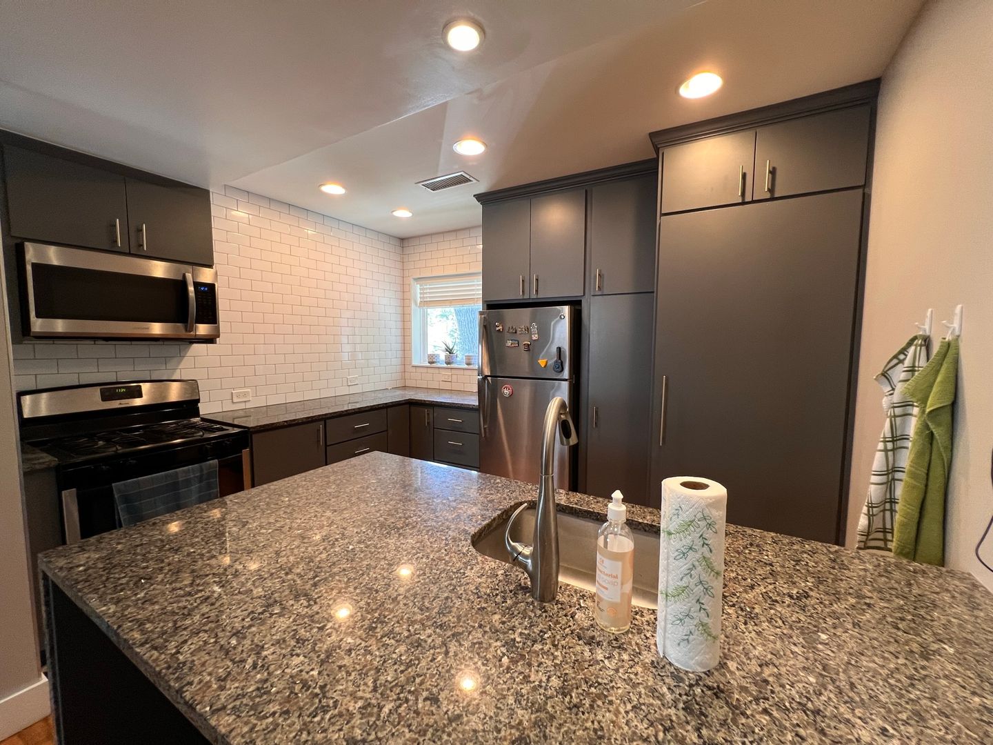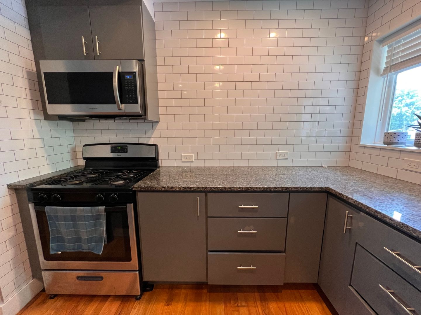 Granite counter tops, stainless appliances, subway tile backsplash, dishwasher, washer dryer in unit, central heat and air, ceiling fan, custom tile bathroom, large bedroom with huge walk-in closet, office nook.