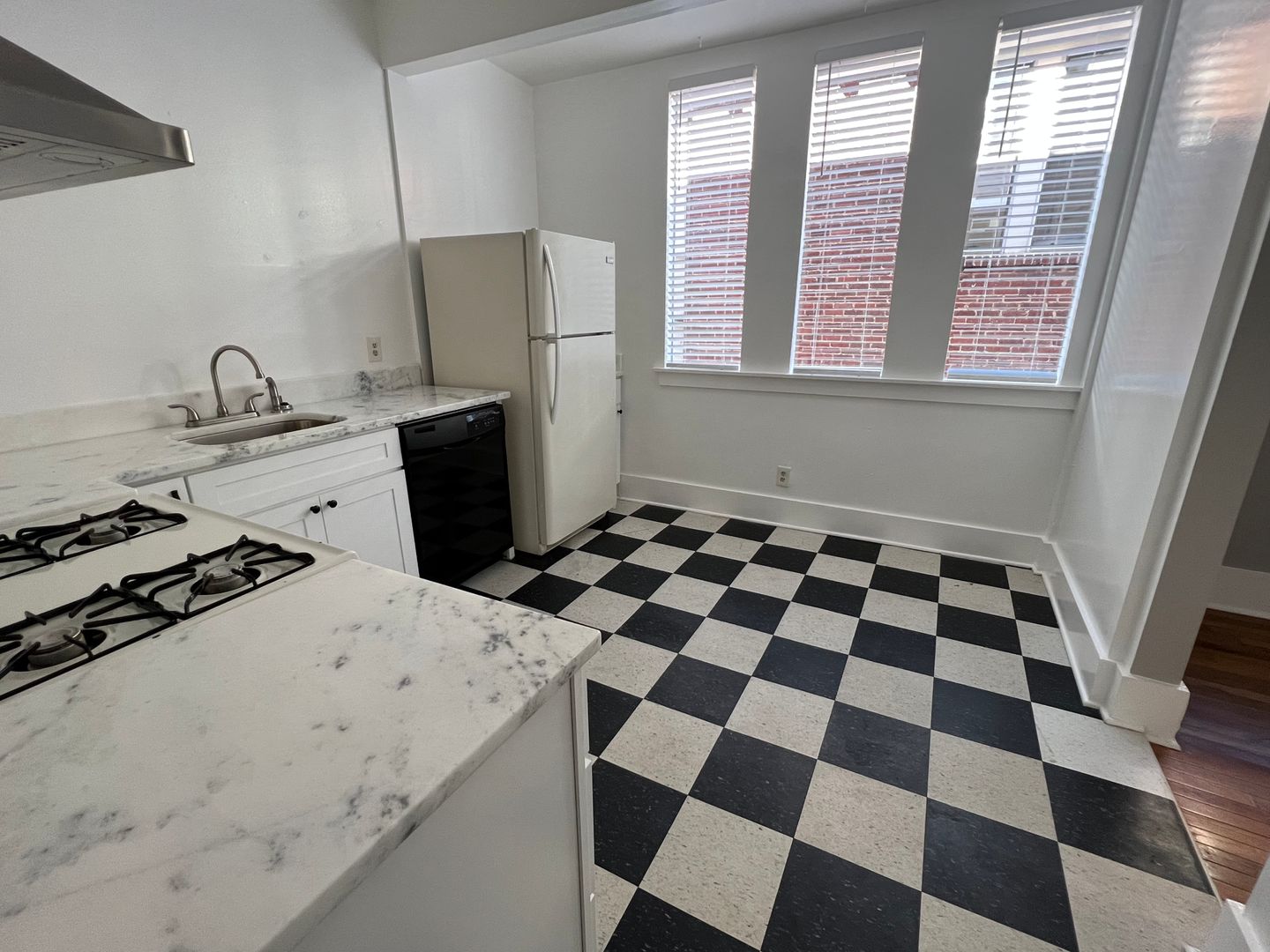 Beautiful original hardwood floors with tons of natural light. Large kitchen with dishwasher, full pantry, and tons of natural light. Dining area great for home office/creative space/projects. On-site laundry, off-street parking, and coded entry.